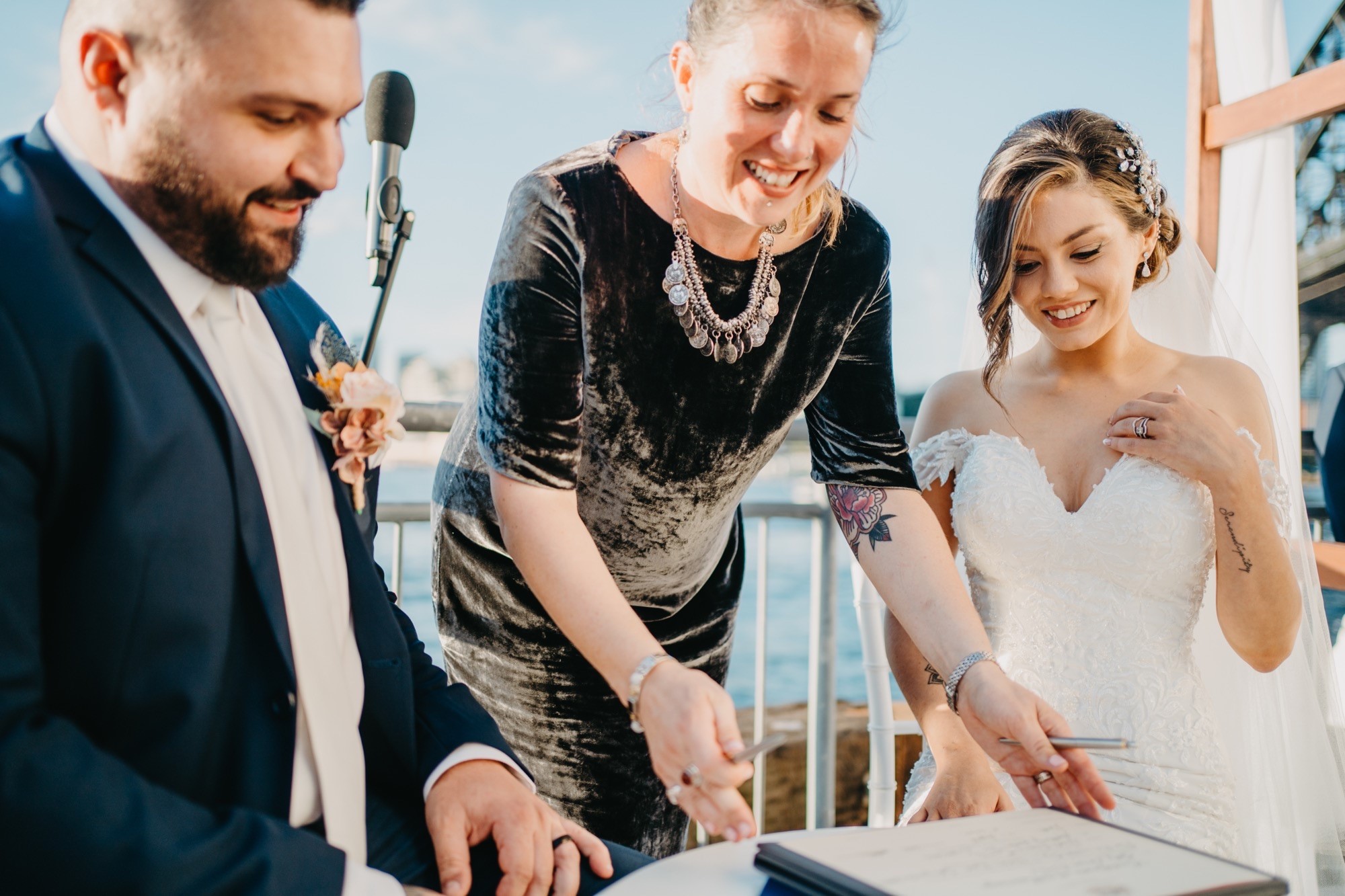 Sally went above and beyond for our ceremony and we are so grateful. She was honestly the greatest celebrant you could ask for. From the moment we met her, her warm nature and caring disposition was evident. She really wanted the best outcome for our wedding and was incredibly attentive… On the day OMG, she really blew us and our guests away. Sally had so many great ideas to help facilitate the most beautiful service, in a way that was tailored to us. We received compliments from our guests, who said she was unbelievably engaging, funny, well-spoken and professional and that she did such a good job of accurately representing us.
